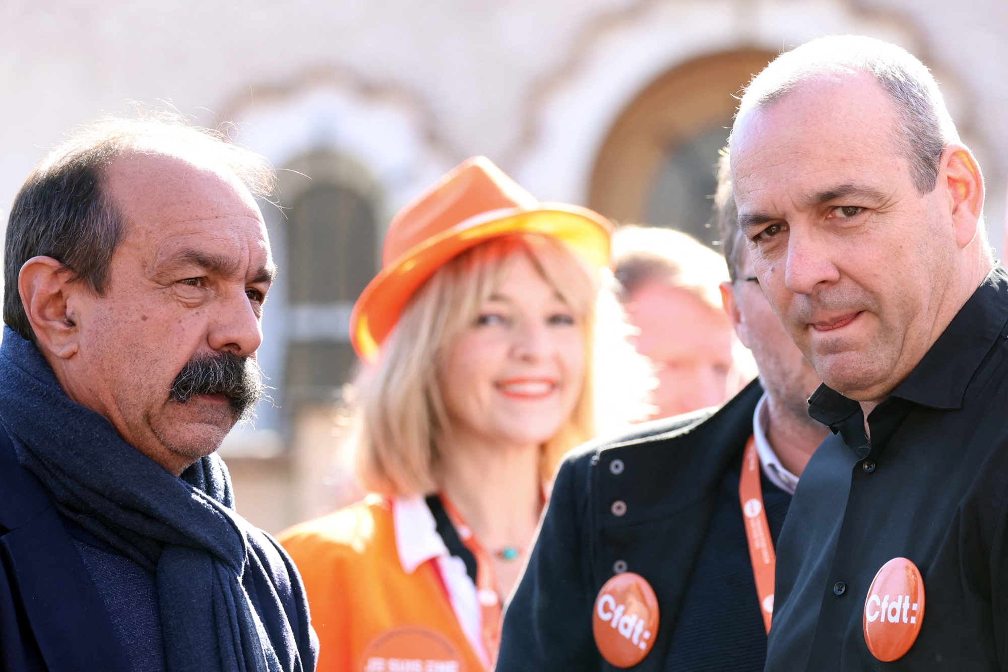 Cgt Gewerkschaftssekretar Philippe Martinez Gewerkschaftssekretar Des Demokratischen Gewerkschaftsbundes Cfdt Laurent Berger Der Gewerkschaftssekretar Frederic Souillot Von Force Ouvriere Fo Und Der Prasident Des Cfe Cgc Francois Hommeril